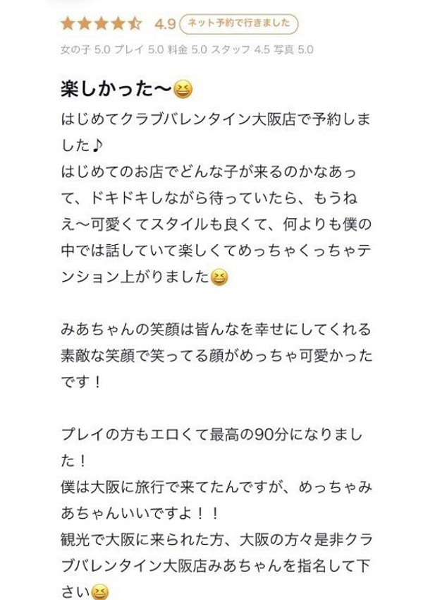 クラブ バレンタイン-大阪店-のみあさんの口コミ