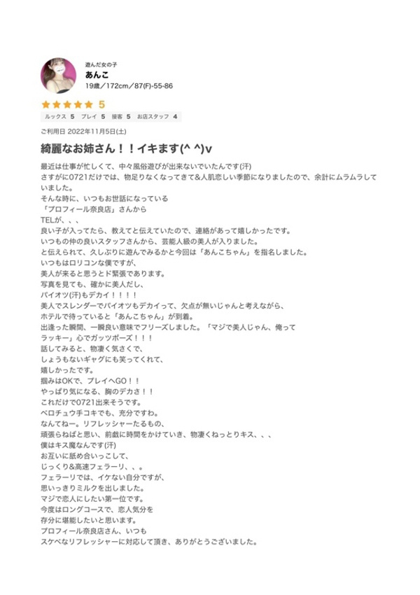 プロフィール奈良店 (奈良市 / デリヘル) あんこ