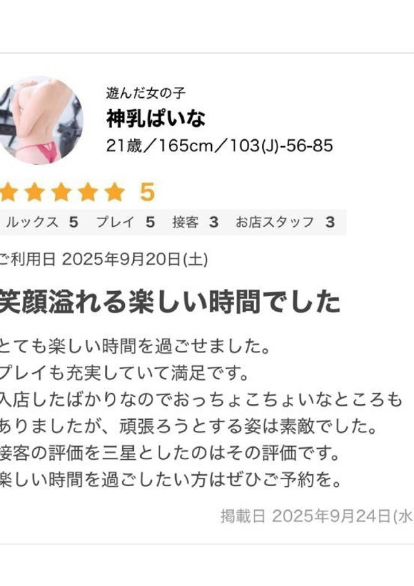 ギャルズネットワーク大阪の神乳ぱいなさんの口コミ