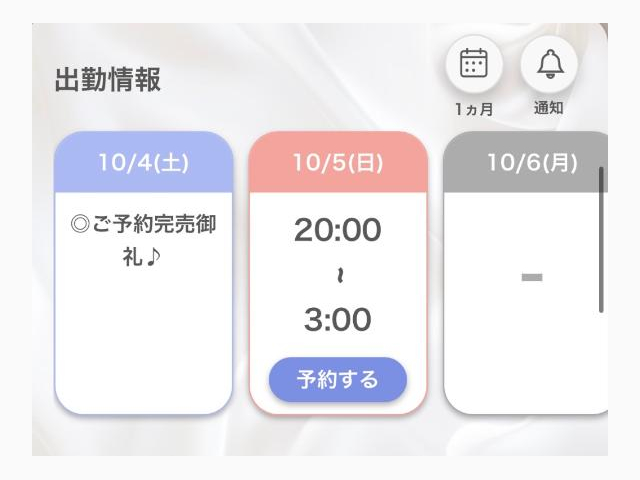18:00〜01:00 | 20:00〜03:00 | 要確認 | 要確認 | 20:00〜03:00 |