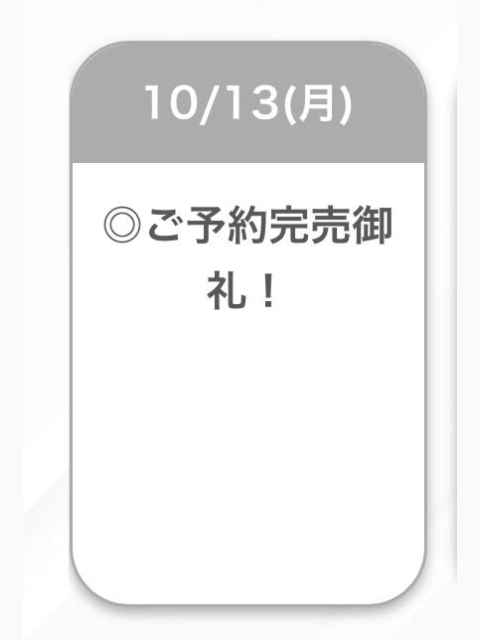 10/13(月) | 10/14(火) | 10/15(水) | 10/16(木) | 10/17(金) |