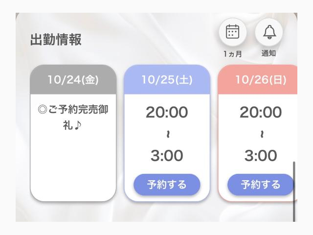 | 10/25(土) | 10/26(日) | 10/27(月) | 10/28(火) | 10/29(水) |