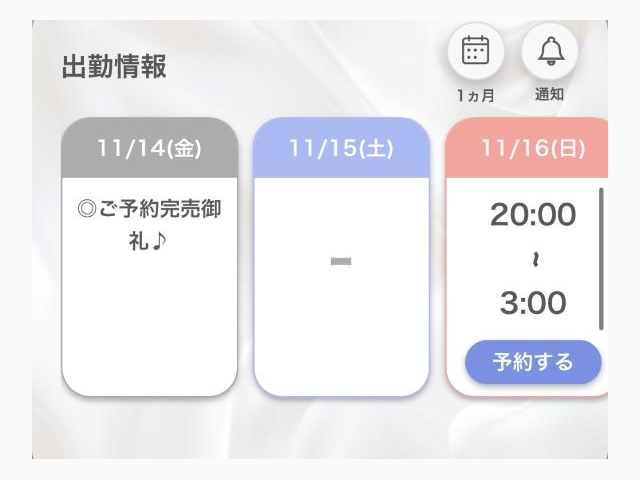 | 11/14(金) | 11/15(土) | 11/16(日) | 11/17(月) | 11/18(火) |