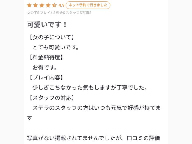 口コミありがとうございます🐰💗スタッフさんのことまで褒めてくれて嬉しいです🎶ステラのスタッフさんいつも元気だよね!🥰うたのは経験が多いわけではなくて少しぎこちなかったかな?🥲次はもっと満足してもらえるように頑張るね🥺