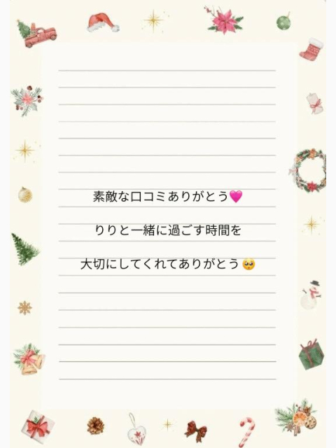 素敵な口コミありがとうございますっっ!「それだけで予約する価値がある」って言ってもらえたのめちゃくちゃ嬉しいです🥺🩷これからもまた会いたいなって思って貰えるようにりりなりに頑張るので🥺また来年もよろしくね💕︎