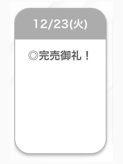 | 12/24(水) | 12/25(木) | 12/26(金) | 12/27(土) | 12/28(日) |