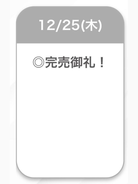| 12/25(木) | 12/26(金) | 12/27(土) | 12/28(日) | 12/29(月) |