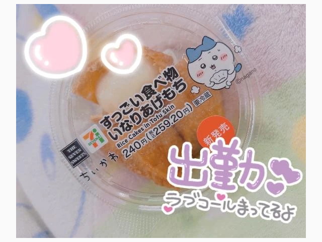 セブンイレブンでちいかわコラボのいなりあげもちを見つけて思わず買っちゃいました✨️ お揚げさんも美味しかったです🤤 冷たいのより温かい方が美味しそうな味だったので今度はレンジで温めてから食べようと思います 今日も優しいお兄様のお誘い待ってます☺✨
