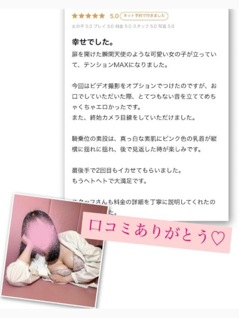 口コミありがとうございます💝天使だなんてうれしい🥹💞💞お兄様がフ◯ラできもちよくなっていたの興奮しました♡またまってるね🥰💞