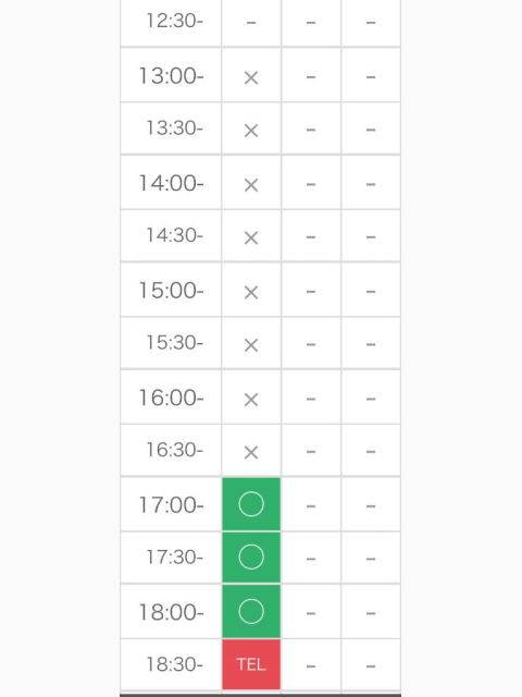 | 13:00〜19:00 | 要確認 | 22:00〜04:00 | 14:00〜20:00 | 10:00〜19:00 |
