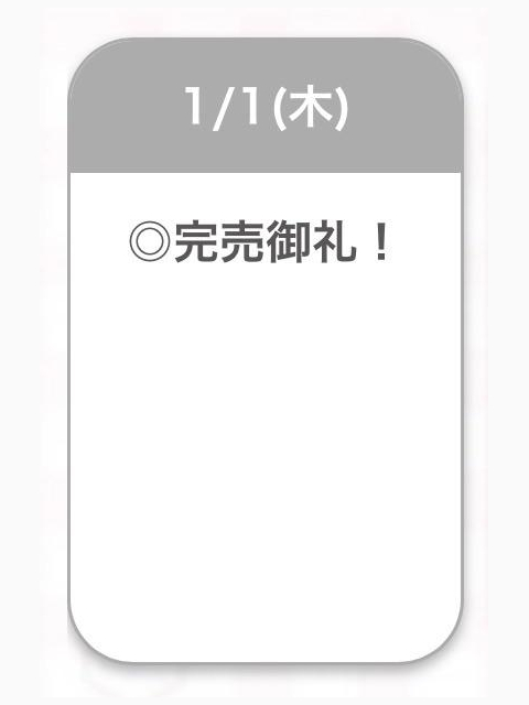 | 01/01(木) | 01/02(金) | 01/03(土) | 01/04(日) | 01/05(月) |