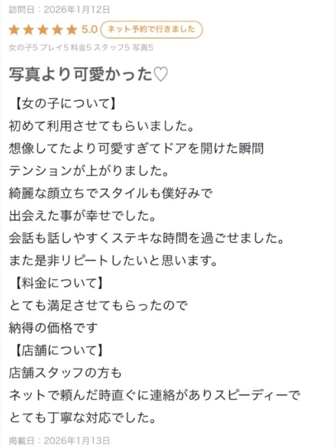 昨日遊んでくれてありがとうございました🥰 優しいお兄さんで嬉しかったです 次いつ会えるかな🥺 またお誘い待ってます🫶🏻 では、 ラストのでラブコール待ってます 🌟ネット予約がお得な3つのポイント🌟 ① +10分サービス延長⏰ ご予約いただいたお時間に、さらに10分プラス♪ ② 電話予約よりも優先案内📞 スムーズ&確実にご案内できます。 ③ オプション割引イベント実施中!!ネット限定でお得にオプションが楽しめるチャンス✨