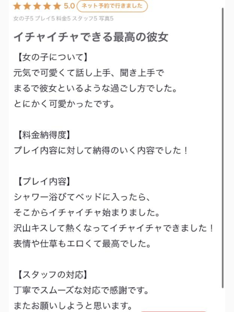 素敵なクチコミありがとうございます🫶🏻💗にこにこしながら読んでました✨嬉しいことばかり言ってくれてすごく幸せですらなと素敵な時間過ごしてくれてありがとう🥺もっともっとこれからも素敵な思い出作っていけたらいいなあ🤍お身体に気をつけてまた会いに来てね🫶🏻🩷