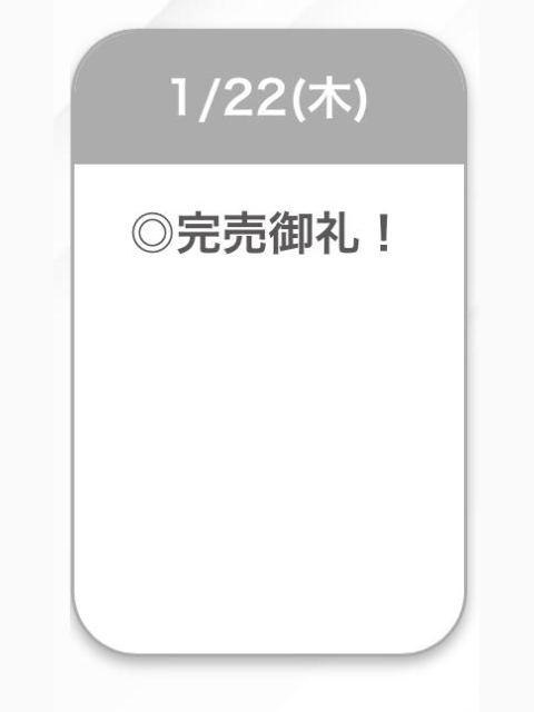 | 01/23(金) | 01/24(土) | 01/25(日) | 01/26(月) | 01/27(火) |