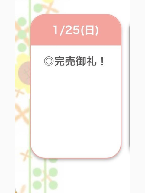 | 01/26(月) | 01/27(火) | 01/28(水) | 01/29(木) | 01/30(金) |