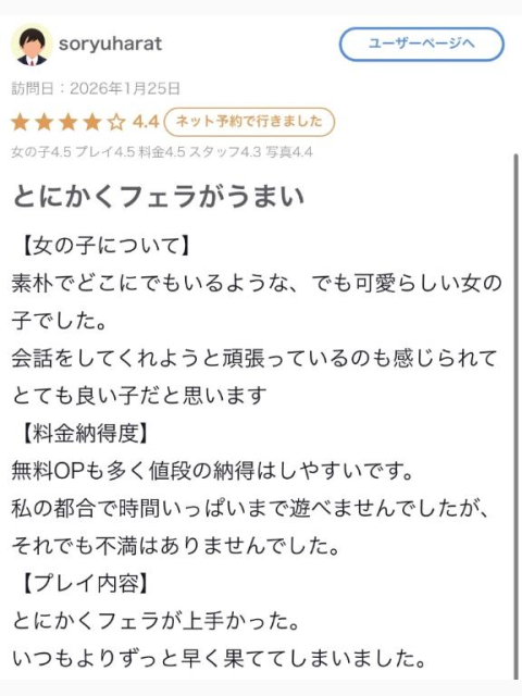 口コミありがとうございます💕フェ◯上手いって褒めてくれて嬉しいです‼︎短い時間で満足したって喜んでくれてよかったなぁ~💭また会いに来て下さい‼︎